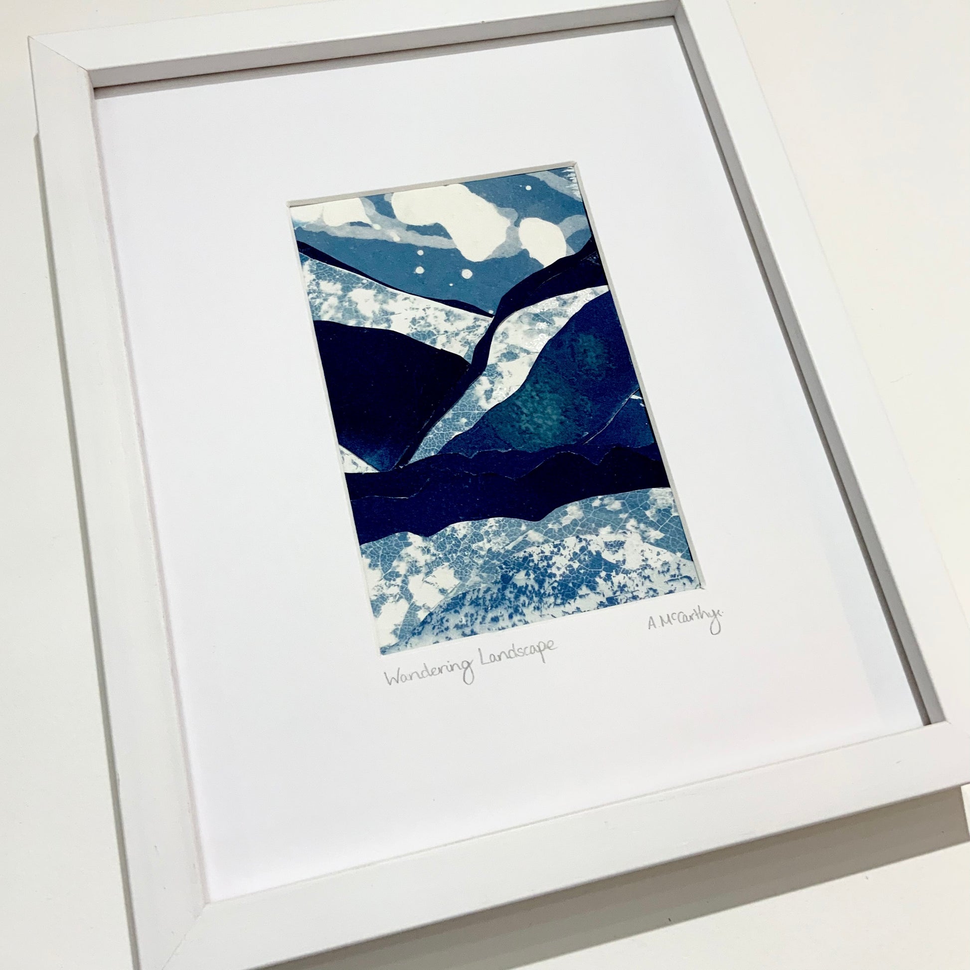 This original, one-off artwork is made up of collaged Cyanotype and Lino Prints. Using sections of different prints to create unique compositions has been a great way to prevent waste and expand my creative practice.