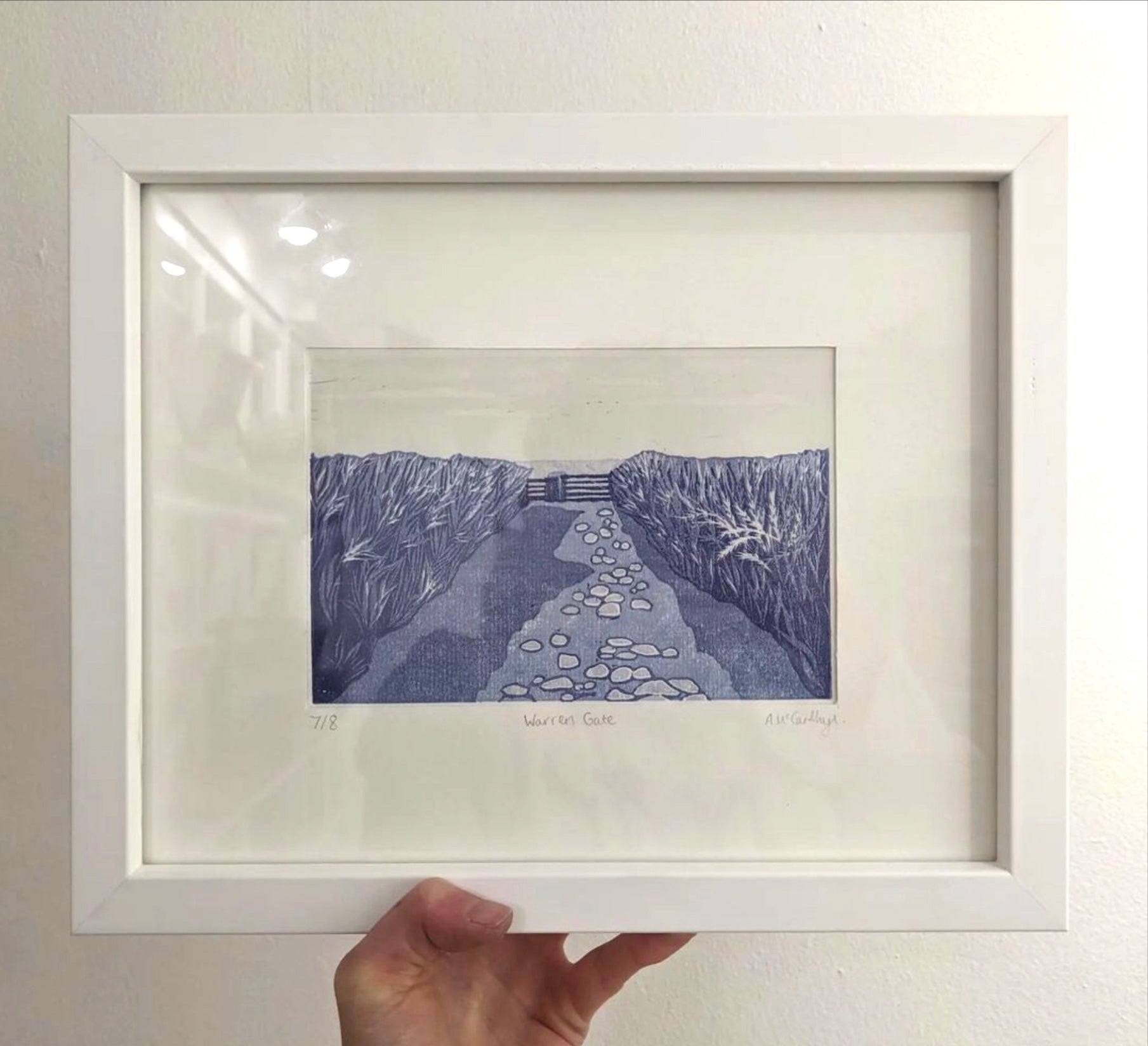 This ‘Warren Gate’ print is an original Lino Cut. I carved the design using traditional hand tools and printed it using my press.